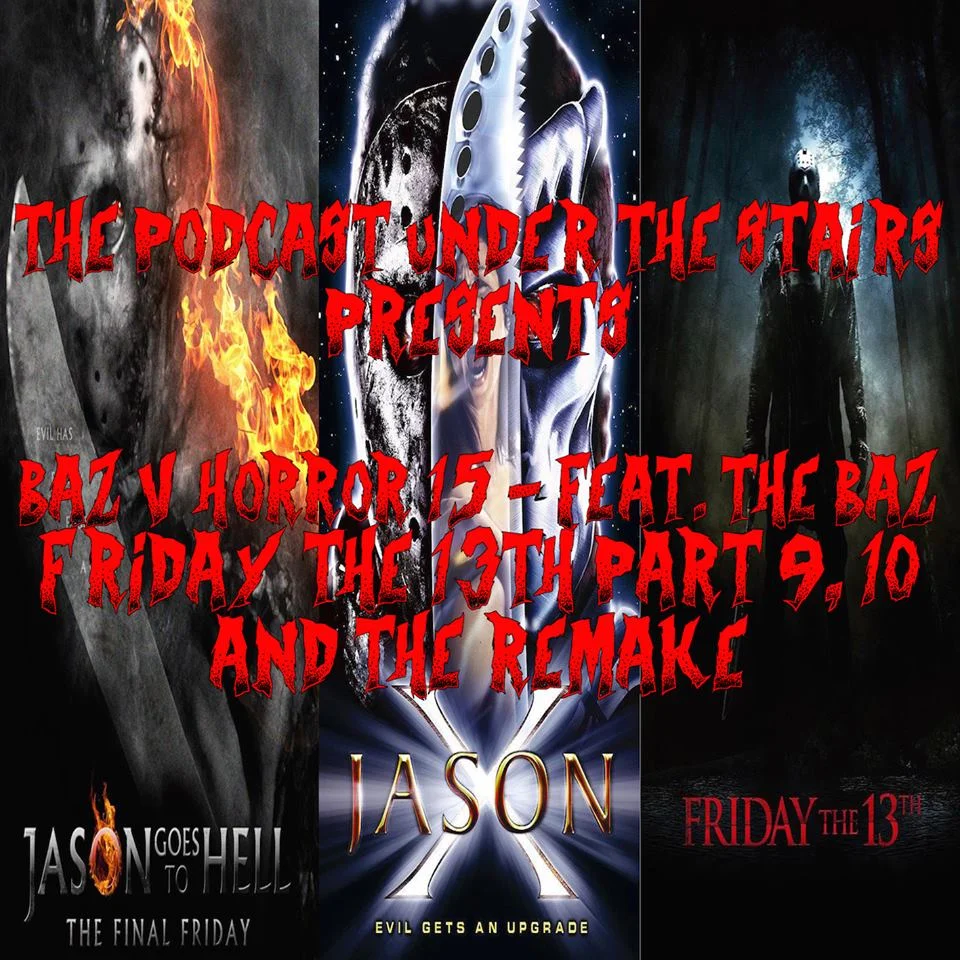 On this episode Duncan is joined by The Baz for Baz v Horror 15 where The Baz concludes his journey into the mad going-ons at Crystal Lake in Friday the 13th Part 9 - Jason Goes to Hell (The Final Friday) (1993), Jason X (2001), Friday the 13th - Remake (2009).